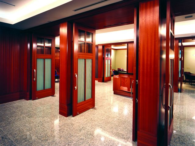After completing the core and shell construction of the 400 Berwyn Office Building for Brandywine Realty Trust, Nason Construction worked closely with architect Kling Lindquist and tenant Pepper Hamiliton, a national law firm, on the high-end interior fit-out. The well appointed office space totals 40,000 square feet and boasts a variety of fabrics and textures including custom-made window treatments, handcrafted millwork, built-in cabinetry and bookshelves, exotic wood doors, and bathrooms with hand-set granite.